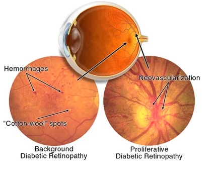 Microaneurysms, hemorrhages, exudates, retinal edema